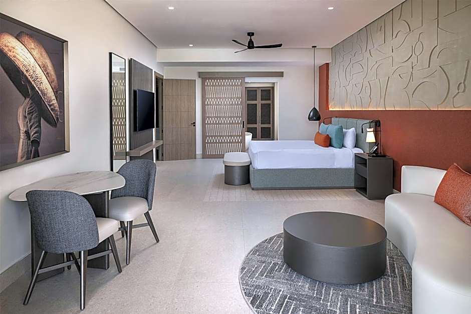 The spacious air-conditioned suite offers a flat-screen TV with cable channels, a mini-bar, a tea and coffee maker, a seating area as well as sea views. The unit has 1 bed.