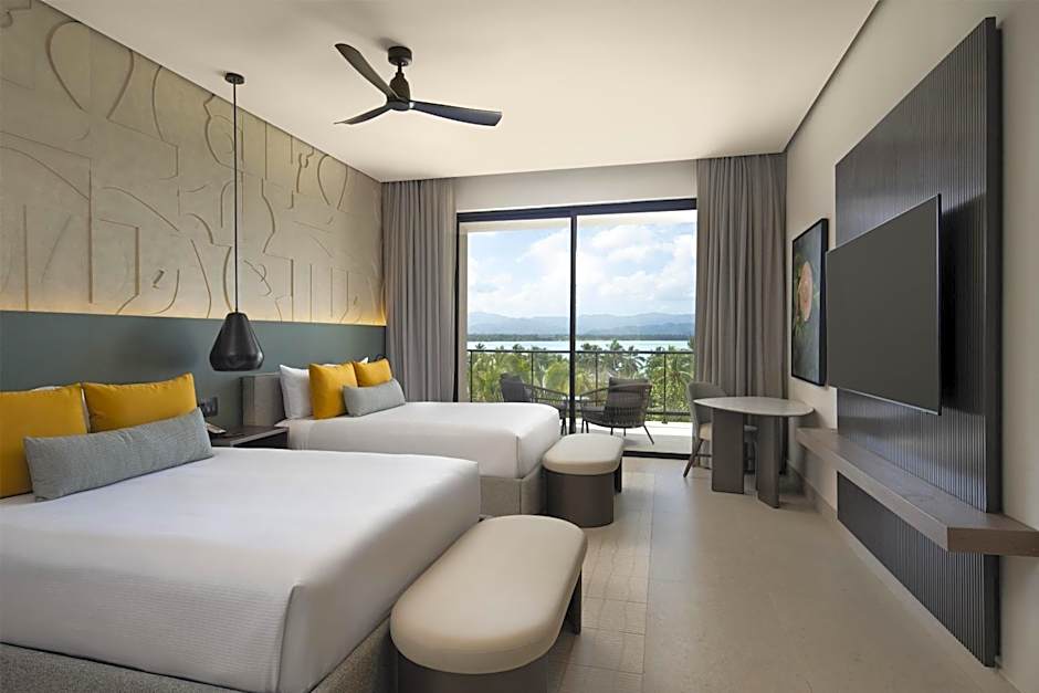 The spacious air-conditioned quadruple room features a flat-screen TV with cable channels, a mini-bar, a tea and coffee maker, a safe deposit box as well as sea views. The unit has 2 beds.