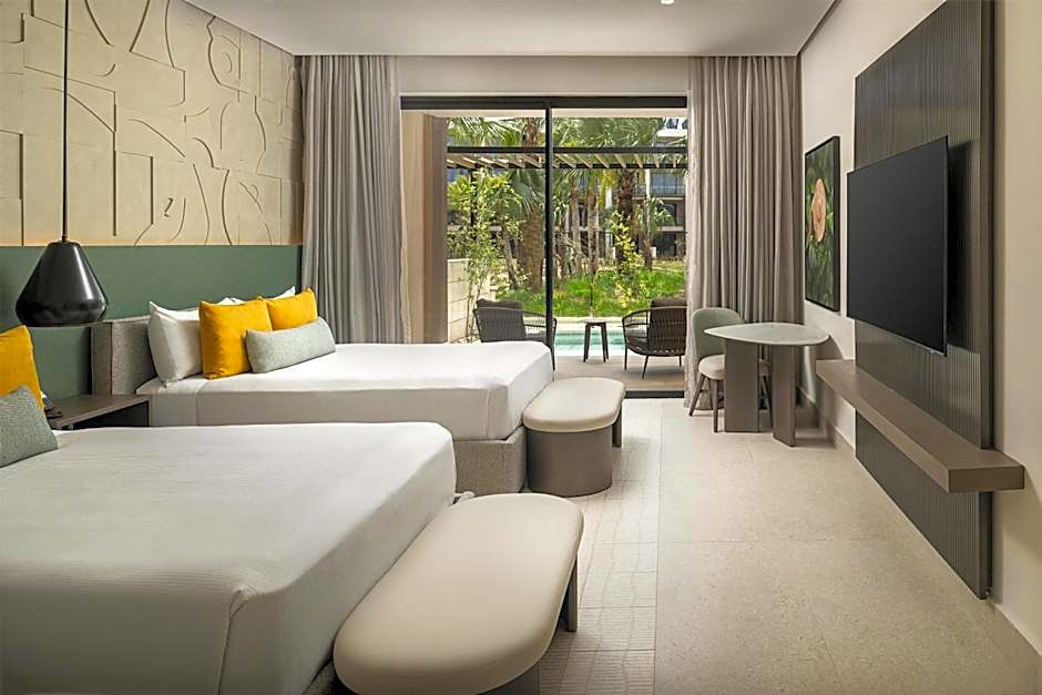 The spacious family room offers air conditioning, a mini-bar, a tea and coffee maker, a seating area and a flat-screen TV with cable channels. The unit offers 3 beds.